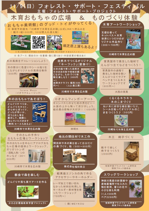 お子様から大人まで、どなたでも木や自然と楽しく触れ合える様々な体験ブースをご用意しておりますので、ぜひ、ご来場ください!